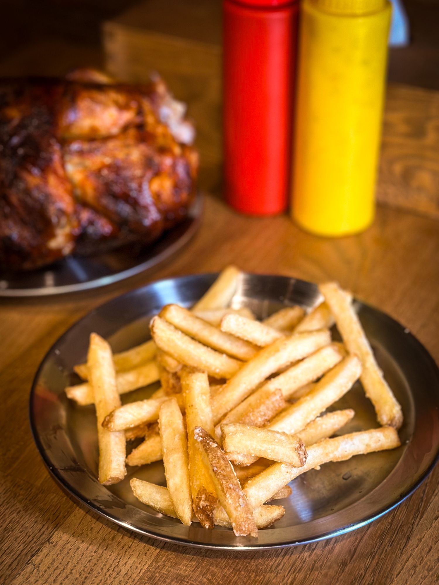 Połówka kurczaka ok 750g, twoje ulubione dodatki ziemniaki z rożna/chrupiące frytk/ryż z kurkumą i ziołami/hummus, mix świeżych warzyw ( lub inna sałatka), jeden z naszych autorskich sosów